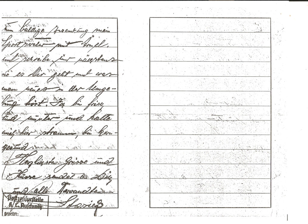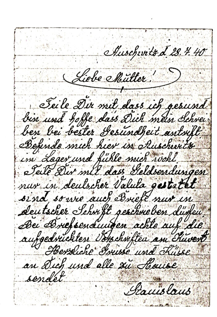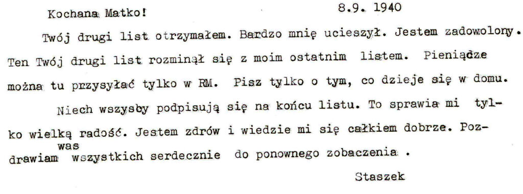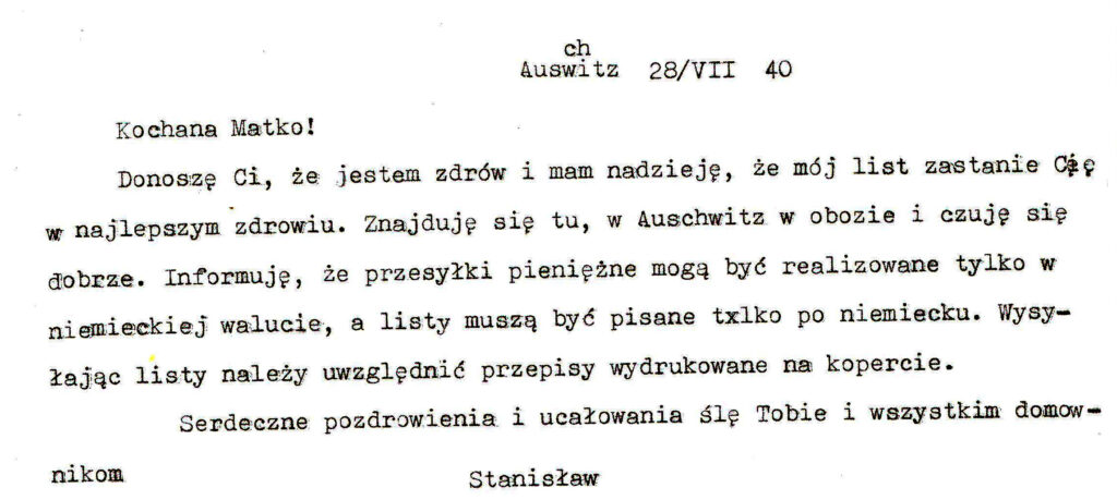 Przy totalnym braku informacji (radia były konfiskowane na początku wojny, a gazety, „gadzinówki”??), otrzymywanie takich listów było jakąś namiastka nadziei, uśmierzeniem lęku. Ale nikt nie miał pojęcia co to jest ten KL Auschwitz….