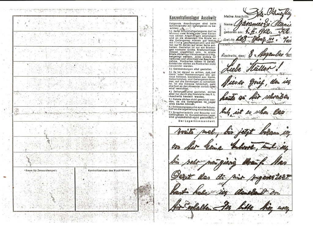 Telegram z Auschwitz do Rodziców i tłumaczenie: