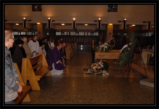 Egzekwie nad trumną Ks. biskup T. Pikus i prowincjałowie