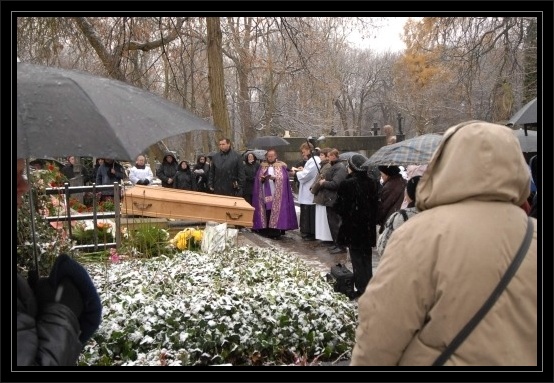 Nad Trumną O. rektor K. Ołdakowski, Modlitwy odprawia Prowincjał krakowski O. K. Dyrka, w futrze tyłem Marychna